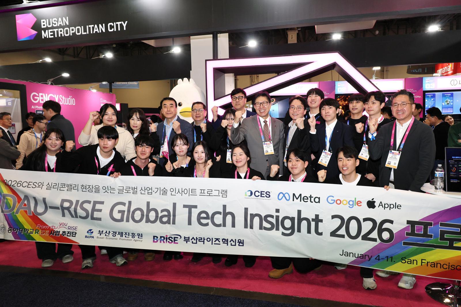 7일 미국 라스베이거스에서 열린 ‘CES 2026’ 행사에서 참가한 부산 지역 기업과 대학, 부산시 관계자들. 부산시는 6~9일 열린 이번 행사에서 지역 혁신기업 28곳의 차세대 주력 제품을 홍보하고 글로벌 시장 진출을 지원했다. 부산시 제공