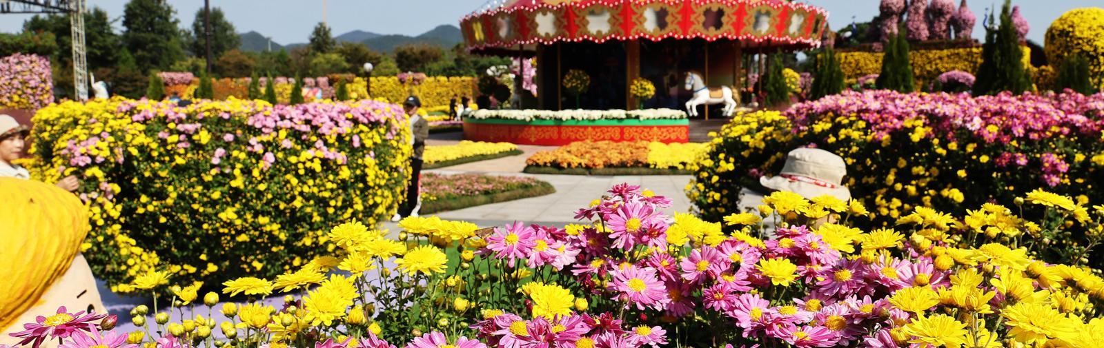 함평군은 ‘2025 대한민국 국향대전’에서 군 농업기술센터가 자체 개발한 23종의 국화 육종을 활용해 회전목마, 대관람차 등 대형 국화 조형물을 전시했다. ‘마법의 국향랜드’를 주제로 국화와 예술, 빛과 체험이 어우러진 환상적인 테마축제로 꾸몄다.