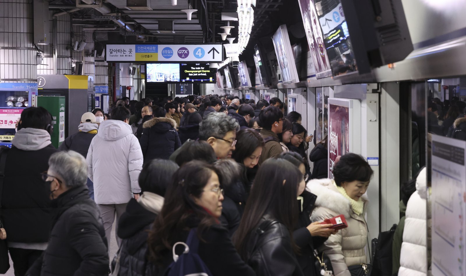 퇴근길에도 서울 시내버스 파업이 계속되는 13일 저녁 서울지하철 4호선 서울역이 퇴근하는 시민들로 붐비고 있다. 2026.01.13 뉴시스