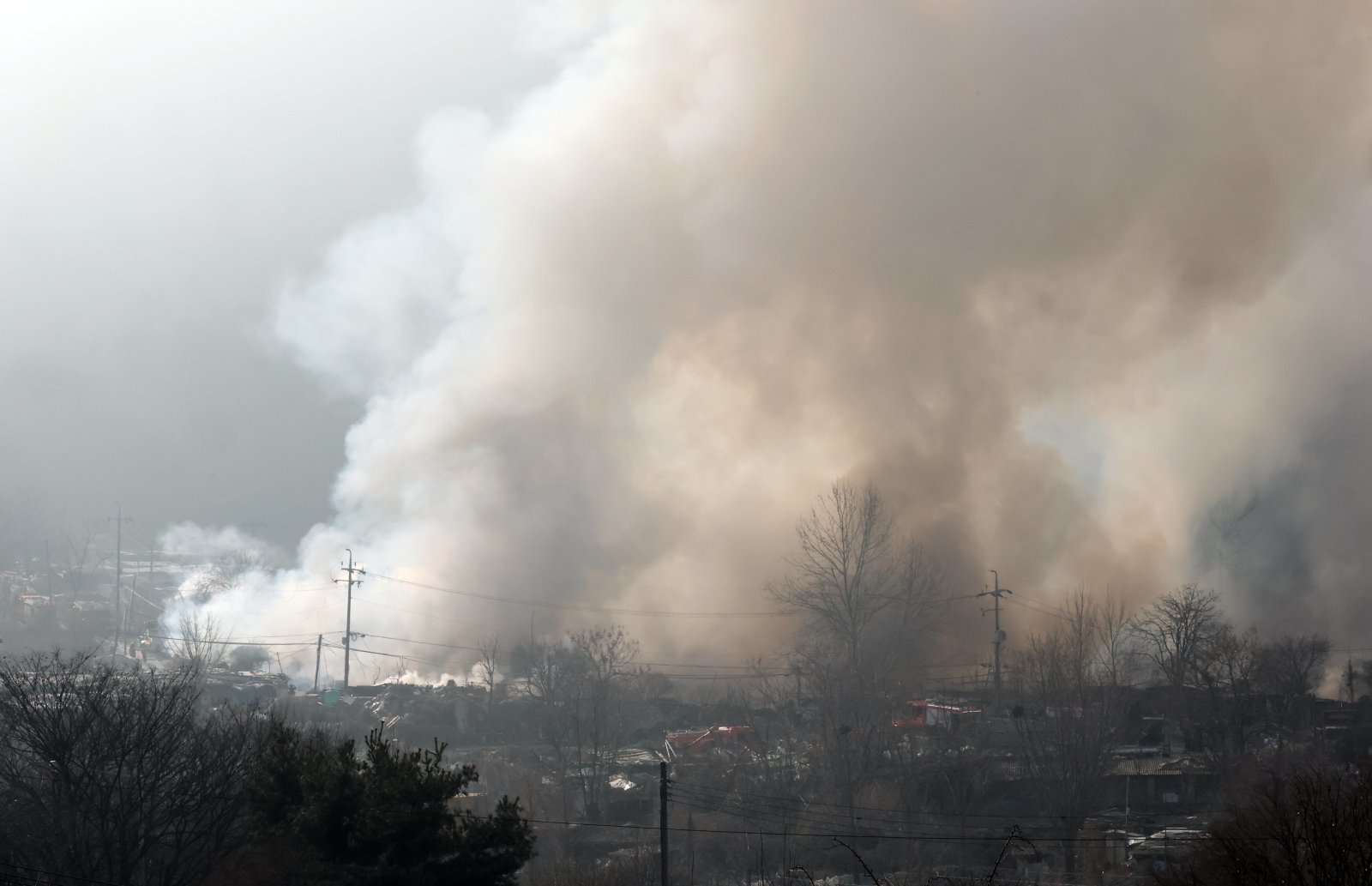 현장에는 인력 1258명과 소방장비 106대가 투입됐다. 산불 진화에 핵심인 소방헬기는 대응 1단계가 발령된 오전 5시 10분에 요청했지만 짙은 안개로 이륙이 어려웠던 것으로 파악됐다.