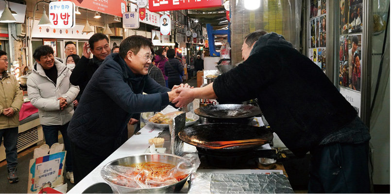 정문헌 종로구청장이 전통시장을 방문해 상인들과 인사를 나누고 있다. 종로구 제공