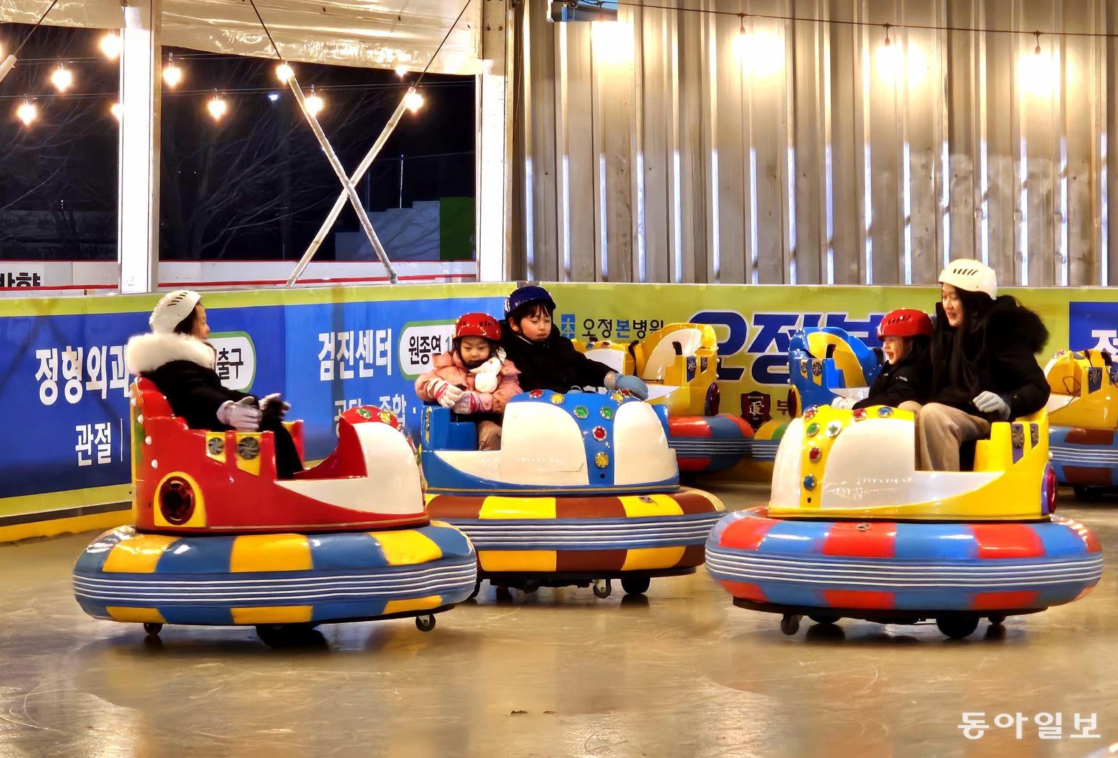 10일 방학을 맞은 어린이들이 경기 부천시 부천종합운동장 잔디광장에 조성된 ‘부천 아이스월드 빙파니아’에서 범퍼카를 타며 겨울을 즐기고 있다. 2100m² 규모로 마련된 빙파니아에서는 스케이트를 비롯해 아이스 슬라이드, 썰매, 범퍼카 등 다양한 겨울 체험을 한곳에서 즐길 수 있다.