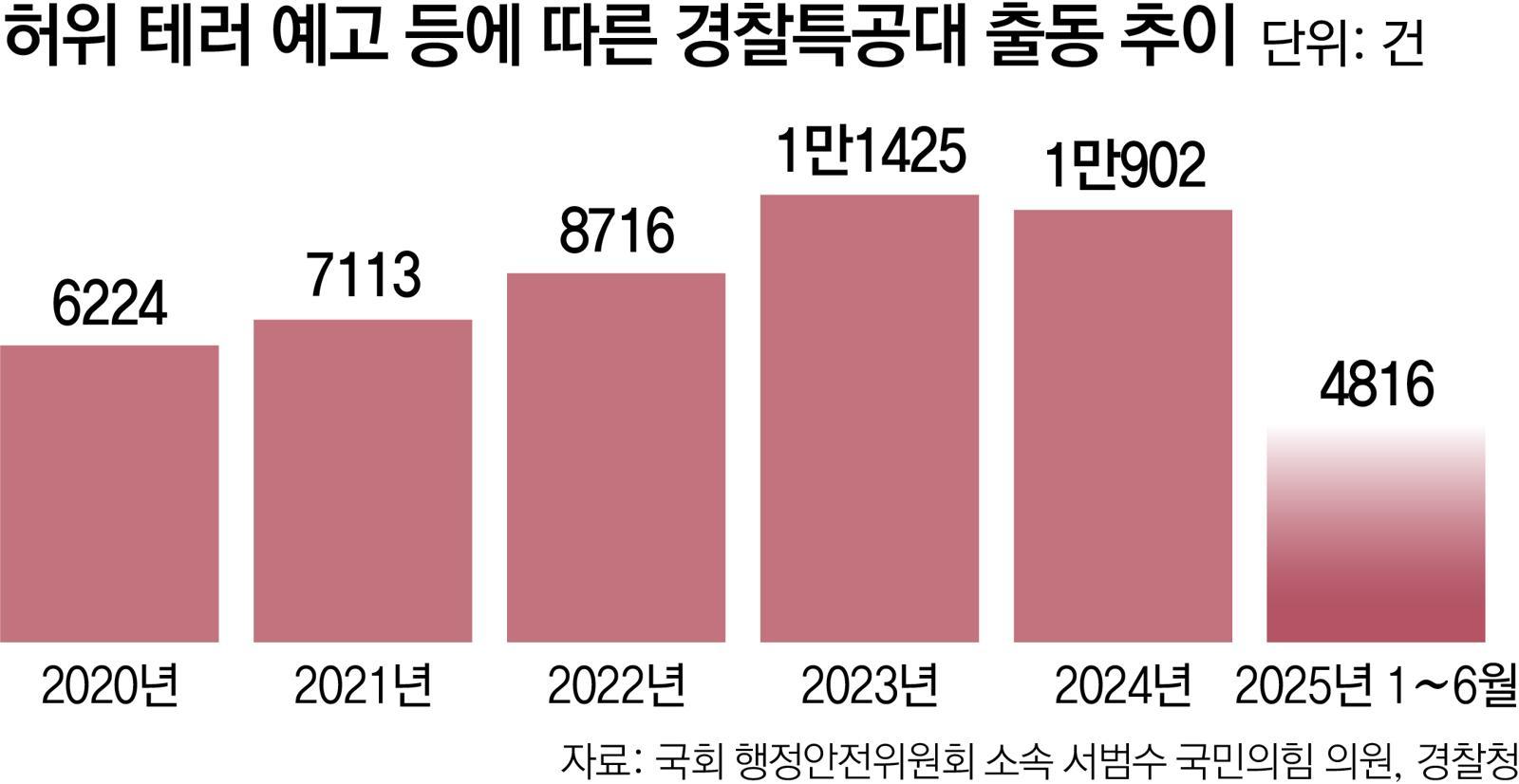 이런 스와팅 범죄로 인한 사회적 피해도 커지고 있다. 허위 테러 위협 등으로 인한 경찰특공대 출동 건수는 2020년 6224건에서 2024년 1만902건으로 급증했다.