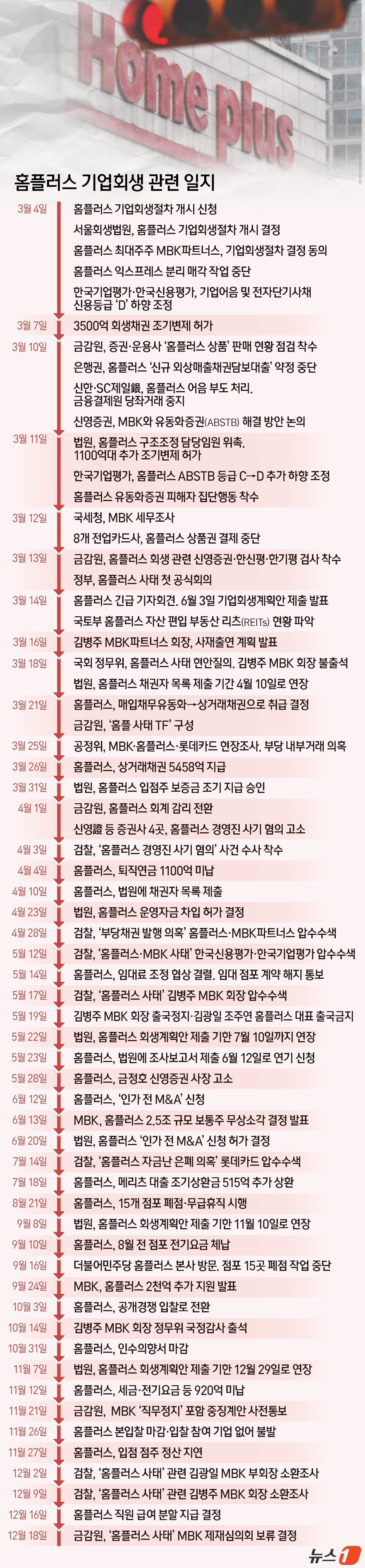 한편 홈플러스는 법정관리 이후 매출이 급감하면서 유동성 악화에 따른 파산 위기설이 제기되고 있다. 지난달에 이어 이달 급여 지연과 7개 점포에 대한 추가 영업 중단 등 자금난 여파가 이어지는 상황이다.