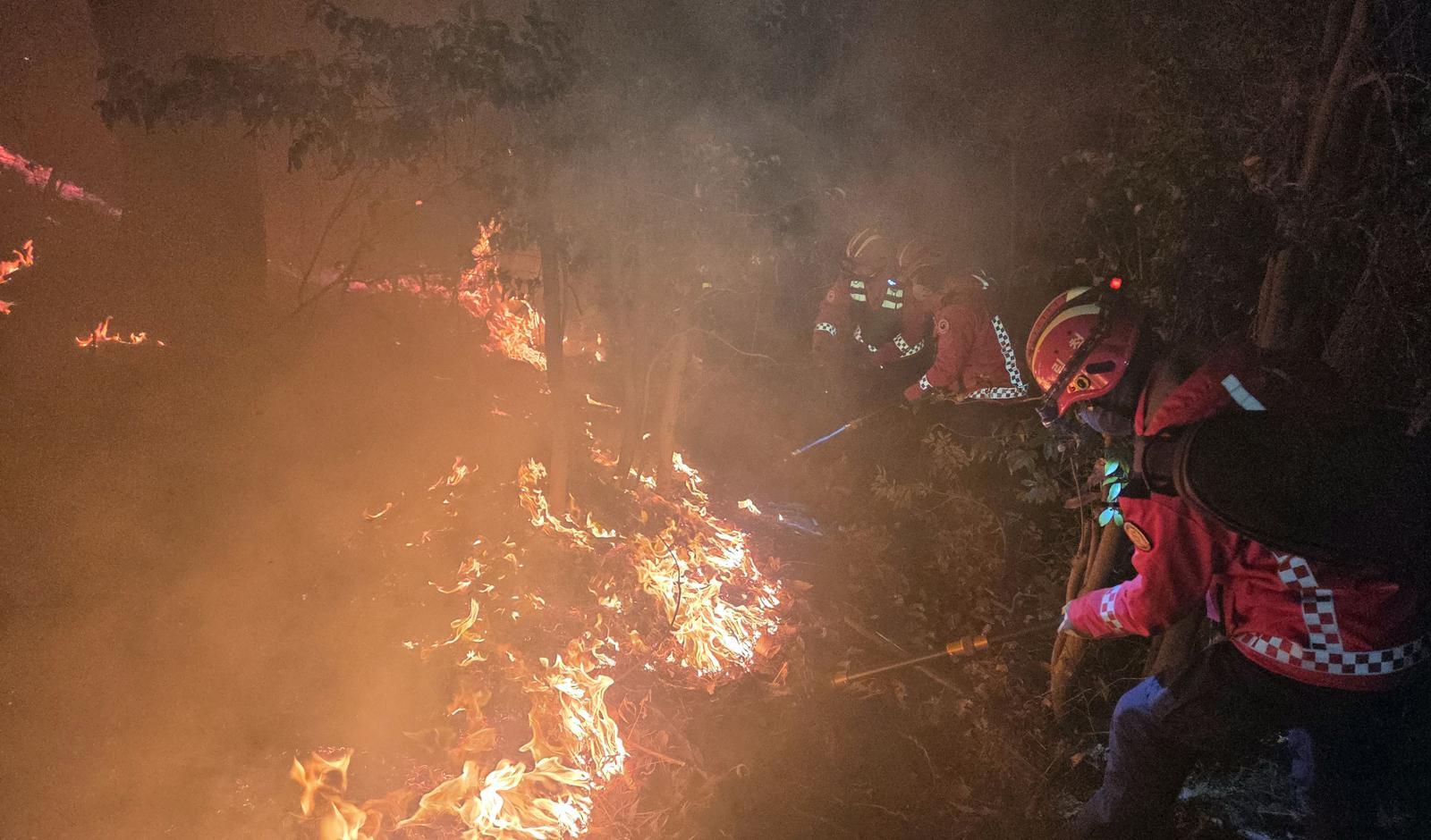 부산 기장에서 발생한 산불의 진화 작업이 밤새도록 이어졌다.