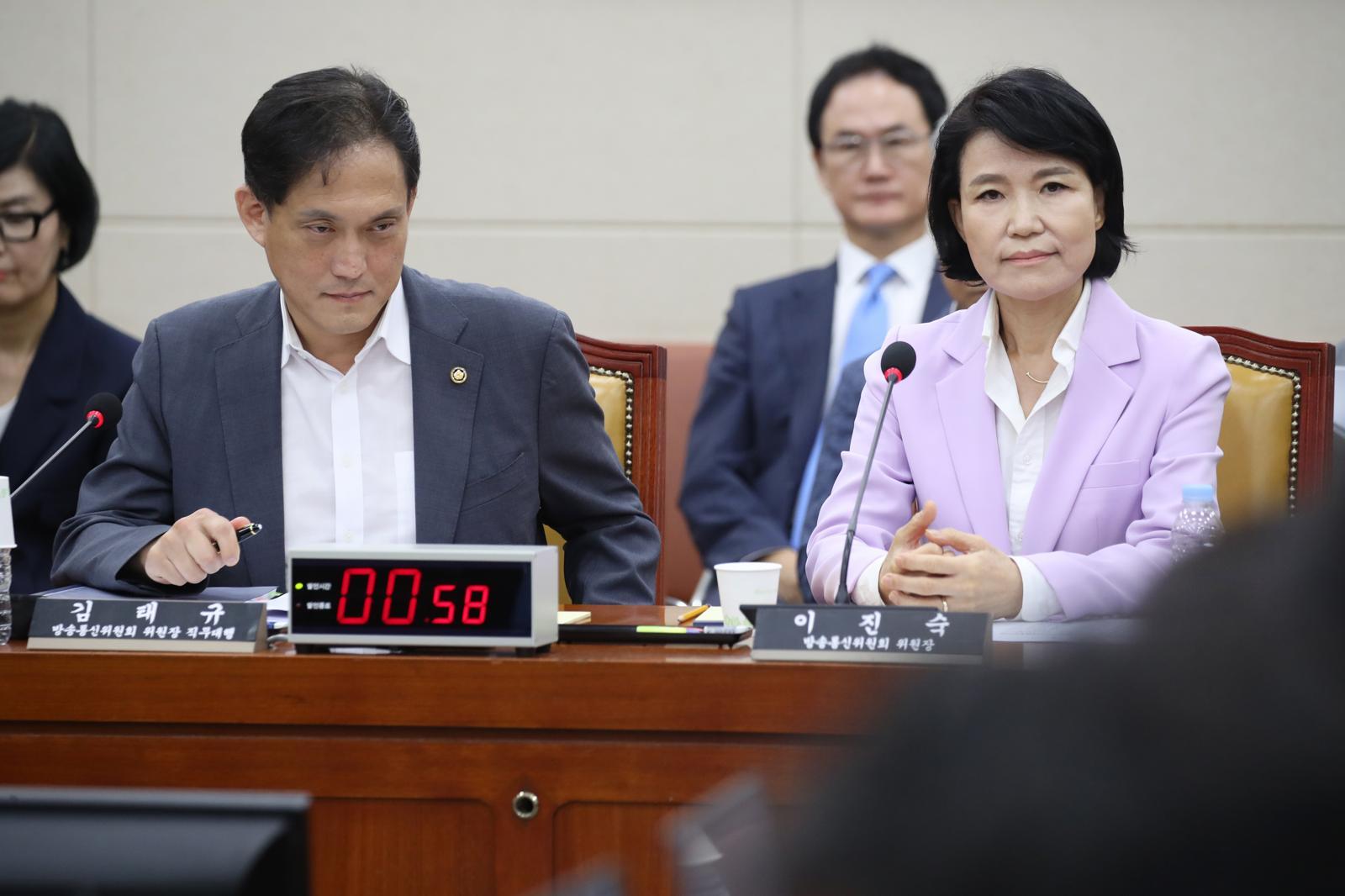 이진숙 전 방송통신위원장(오른쪽)과 김태규 전 방송통신위원장 직무대행. 2024.8.14 뉴스1