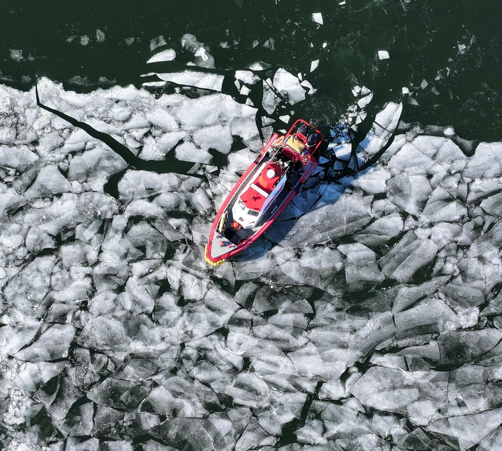 22일 서울 강동구 광나루한강공원 선착장 인근에서 수난구조대 선박이 얼음을 헤치고 앞으로 나아가고 있다. 이날 강원 철원의 아침 최저기온은 영하 24.2도, 서울은 영하 13.2도까지 떨어지는 등 동장군의 기세가 매섭게 이어졌다. 뉴스1