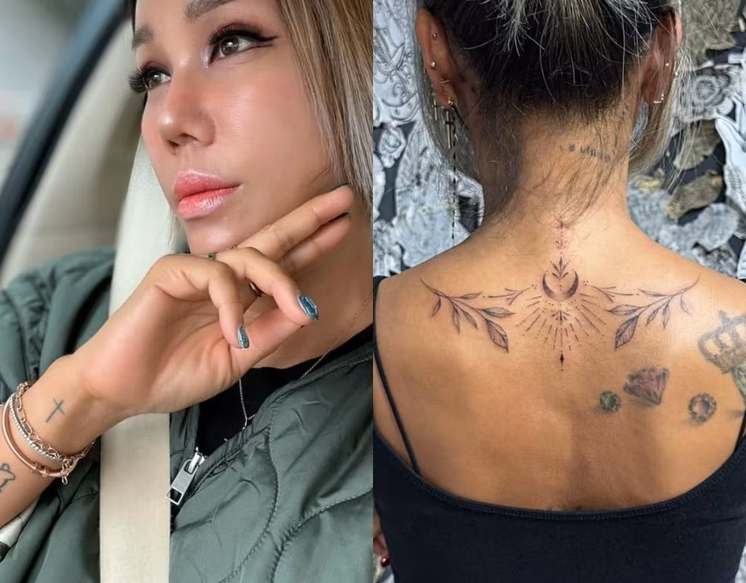 방송인 강원래 아내 김송이 자신 몸 곳곳에 새긴 문신을 공개했다.