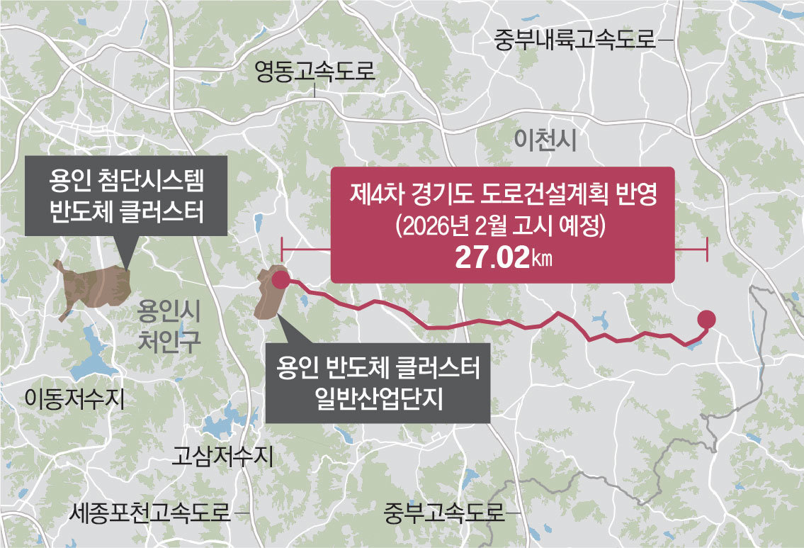 경기도는 국내 반도체 산업 부가가치의 84.7%, 매출의 76%를 차지하는 핵심 거점이다. 경기도는 반도체 경쟁력 강화를 위해 성남∼수원∼화성∼용인∼안성∼평택∼이천을 잇는 세계 최대 규모의 ‘반도체 메가 클러스터’ 조성을 추진하고 있다. 이 구상의 중심에는 용인 반도체 클러스터가 있다. SK하이닉스가 조성 중인 일반산업단지(415만 m²·약 122조 원)와 삼성전자가 주도하는 국가산업단지(728만 m²·360조 원)가 양대 축이다. 용인시 처인구 원삼면에 들어서는 일반산단은 현재 토지와 지장물 보상이 대부분 마무리됐고, 공정도 70%를 넘어섰다.