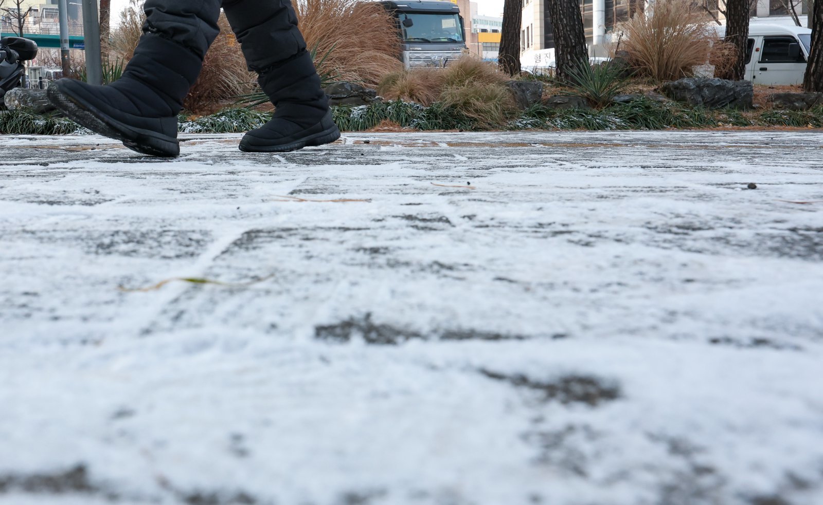 19일 오전 서울 중구 거리에서 시민들이 눈 쌓인 보행로를 지나고 있다. 기상청은 이번주 시베리아에서 밀려온 찬 공기가 한반도를 덮쳐 내륙 지역을 중심으로 영하 10도 안팎의 강추위를 예보했다. 2026.01.19 뉴시스
