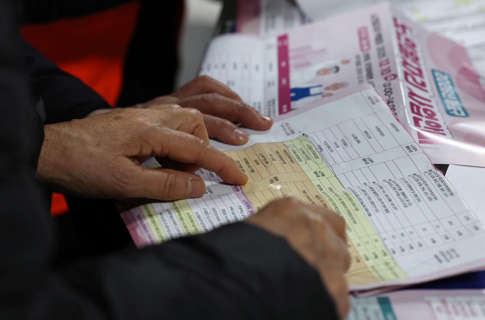 10일 오후 서울 마포구청에서 열린 노인일자리 박람회에서 어르신들이 참가업체 모집요강을 살펴보고 있다. 2025.12.10 뉴스1
