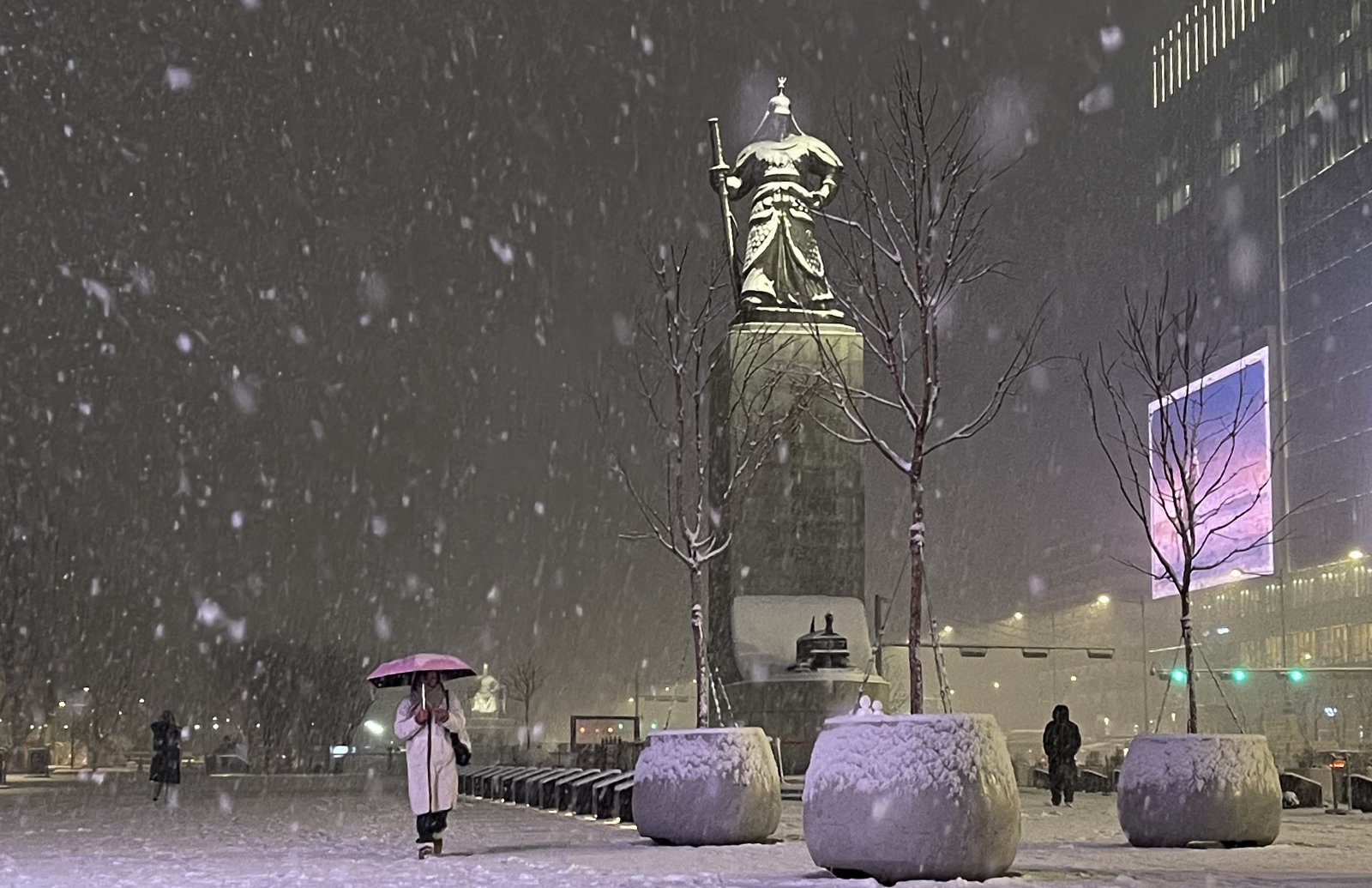 지난달 23일 밤 서울 종로구 광화문 광장에 폭설이 내리고 있다. 2026.1.23 뉴스1