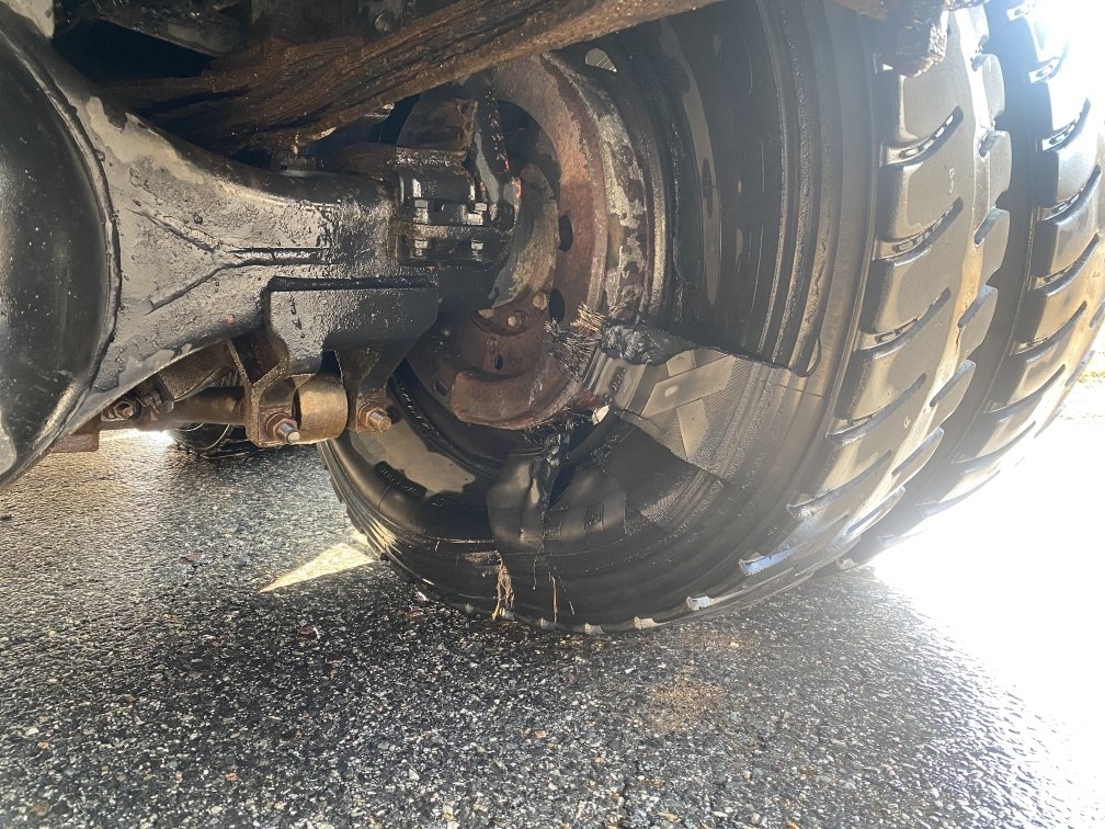 브레이크 라이닝 과열 추정으로 불이 났던 덤프트럭 바퀴. 영동소방서 제공