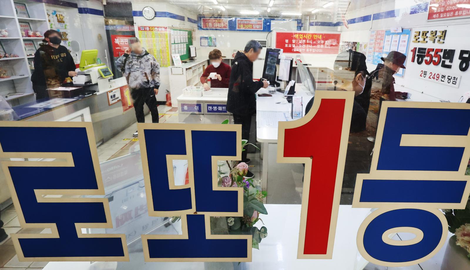서울 노원구에 위치한 복권 판매점을 찾은 시민들이 복권을 구매하기 위해 줄을 서고 있다. 2025.11.24 뉴스1