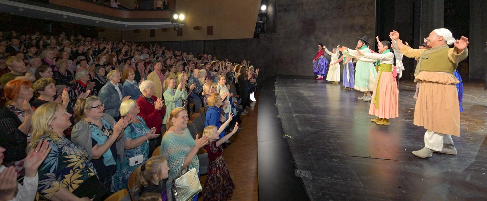 정선의 뮤지컬 퍼포먼스 ‘아리아라리’가 문화체육관광부의 ‘로컬 100’에 선정됐다. 사진은 지난해 6월 에스토니아 타르투에서 열린 ‘한국 문화의 날’에 공식 초청돼 공연 중인 아리아라리 모습. 정선군 제공