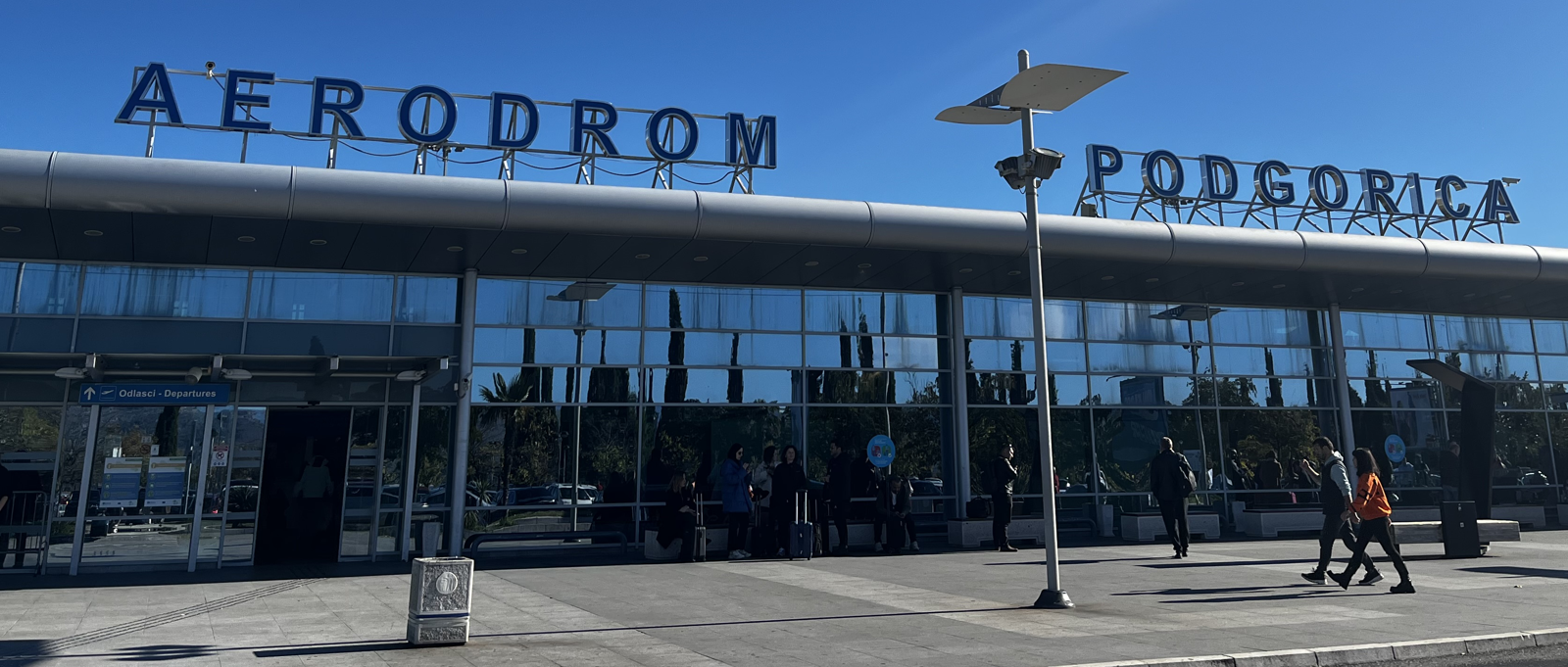 몬테네그로 포드고리차국제공항 여객터미널 앞 도로를 여행객들이 지나가고 있다. 이 공항에는 15개 항공사가 취항해 41개 노선이 운항하고 있다. 인천국제공항공사 제공