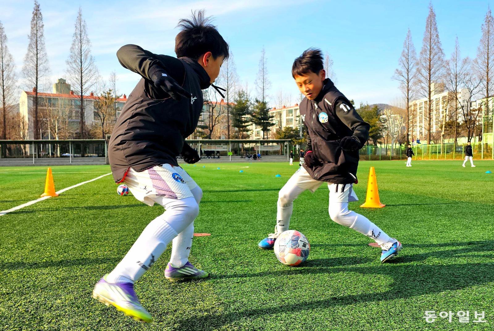 지난달 30일 인천 연수구 용담근린공원 축구장에서 연수구청 유소년축구단 선수들이 영하의 날씨에도 훈련에 열중하고 있다. 연수구청 유소년축구단은 ‘2025 인천시 챔피언십 축구대회’에서 10세 이하(U-10) 부문 우승과 11세 이하(U-11) 부문 준우승을 차지한 유소년 축구 강팀이다.