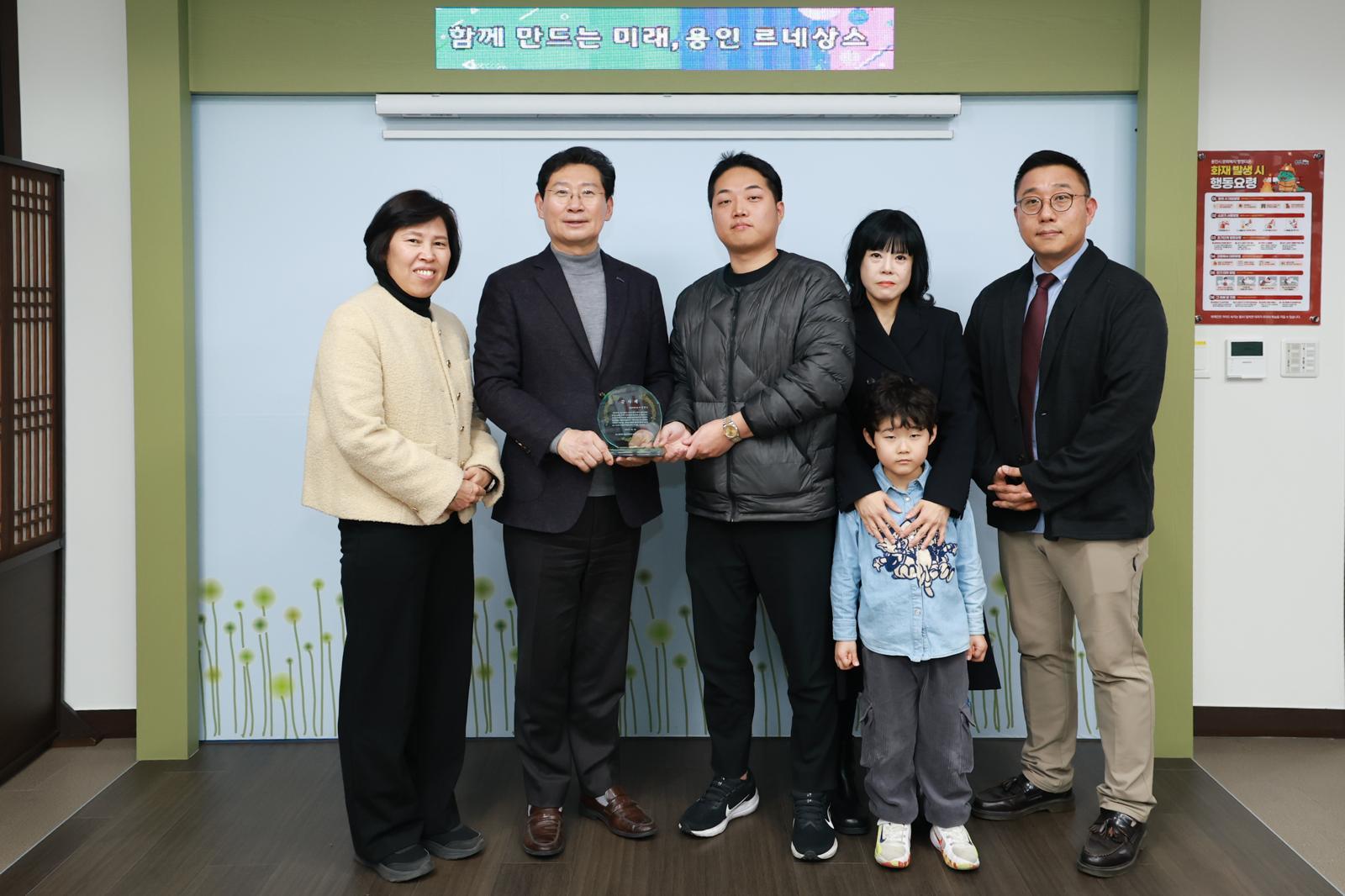 3일 경기 용인시청 시장실. ‘힐스테이트 용인 고진역 1단지’ 입주자대표회의 관계자 등이 이상일 시장에게 “덕분에 밤에 잠을 설칠 걱정이 없어졌어요.”라며 특별한 선물을 건넸다. 입주민들의 진심이 담긴 감사패와 함께, 소음 문제가 해결된 아파트의 모습을 그린 아이들의 그림과 손 편지였다.