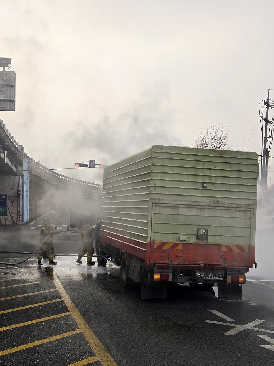 서산서 주행중인 5톤 트럭에 화재…60대 운전자 자력 탈출