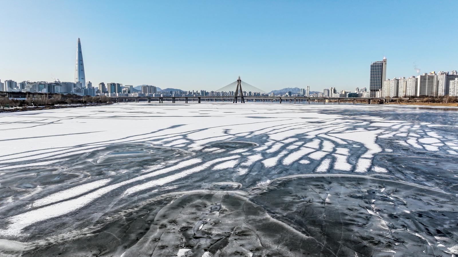 6일 경기 19개 시군에 한파주의보가 내려지면서 일부 지역의 아침 최저기온이 -9.8도까지 떨어지는 등 맹추위가 다시 시작됐다. 지난달 25일 서울 한강 광나루한강공원 선착장 인근 강물이 얼어있는 모습. 2026.1.25/뉴스1