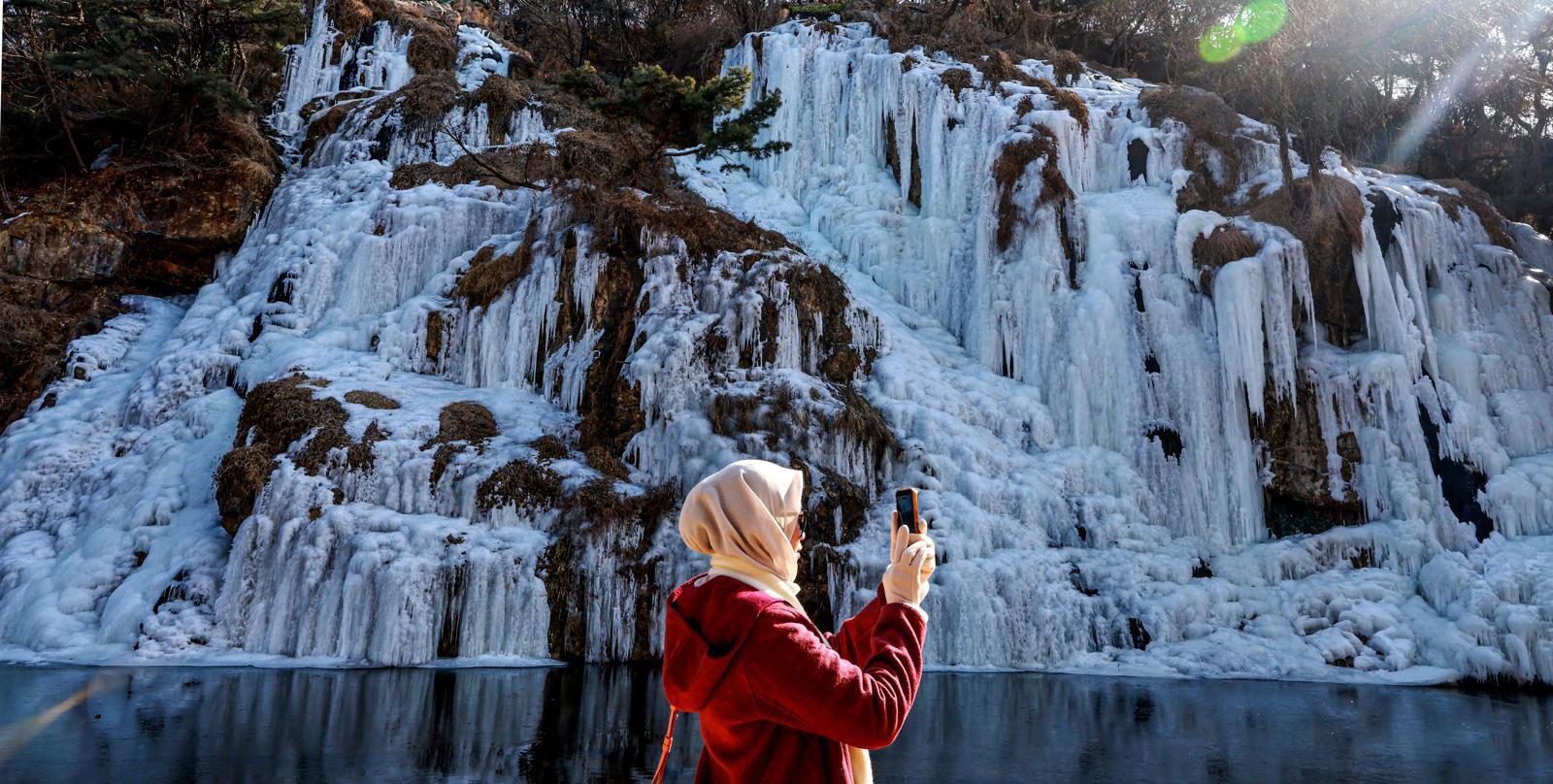 아침기온이 영하10도 밑으로 떨어진 지난 6일 서울 서대문구 홍제천 인공폭포가 얼어붙어 있다. 뉴스1
