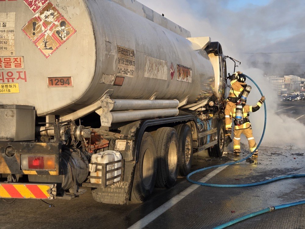 9일 충남소방본부 등에 따르면 이날 오전 8시 5분경 발생한 이 사고로 승용차는 전소됐고, 탱크로리는 운전석 일부가 파괴됐다.