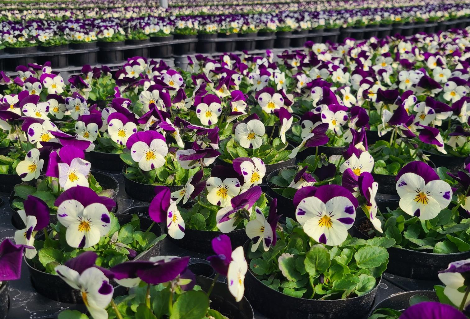 충북 영동군 심천면 약목리의 비닐하우스 꽃묘장에 봄꽃인 비올라가 활짝 피었다. 영동군농업기술센터는 3000m² 규모의 이 꽃묘장에서는 비올라를 비롯해 팬지, 버베나 퀄츠, 꽃잔디 등 16만 본의 꽃묘를 생산하고 있다.