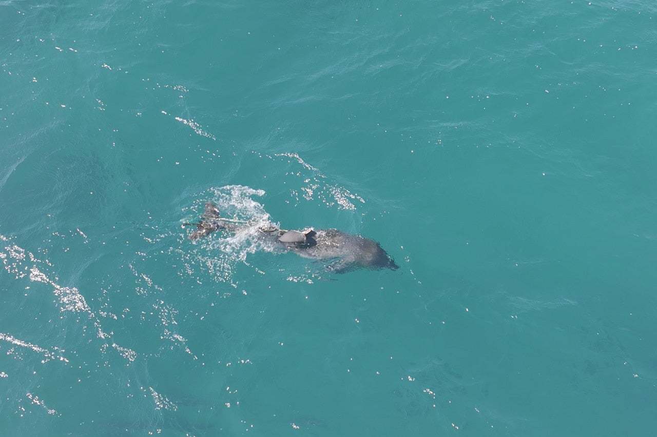 폐어구에 걸려 등지느러미가 잘린 어린 남방큰돌고래가 발견됐다.