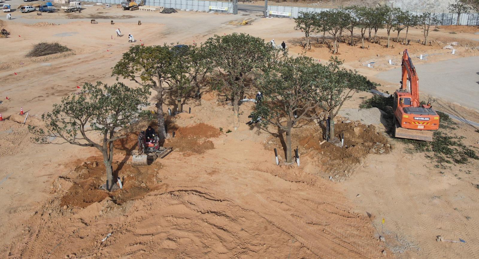 10일 2026여수세계섬박람회 주행사장인 전남 여수시 돌산읍 우두리 진모지구에는 후박나무, 이팝나무 등이 이식돼 있다. 진모지구는 동백나무 등 나무 1만8000여 그루, 초화류 10여만 본이 심어진 남해안 정원이 된다. 여수시 제공