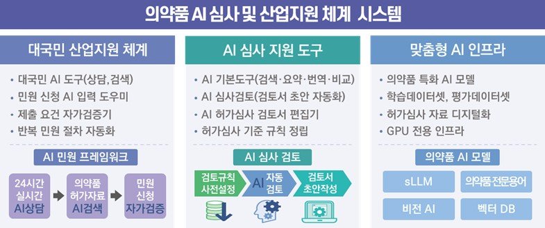 식약처는 올해부터 생성형 AI 등 인공지능 기술을 활용해 원료 의약품 규격과 생물학적동등성 평가 심사 등을 중심으로 의약품 심사 업무 지원에 적합한 AI 모델과 시스템 기반을 구축한다. 이후 3년간 의약품 허가·신고 전 영역으로 AI 심사 시스템을 단계적으로 확장해 나갈 계획이다.