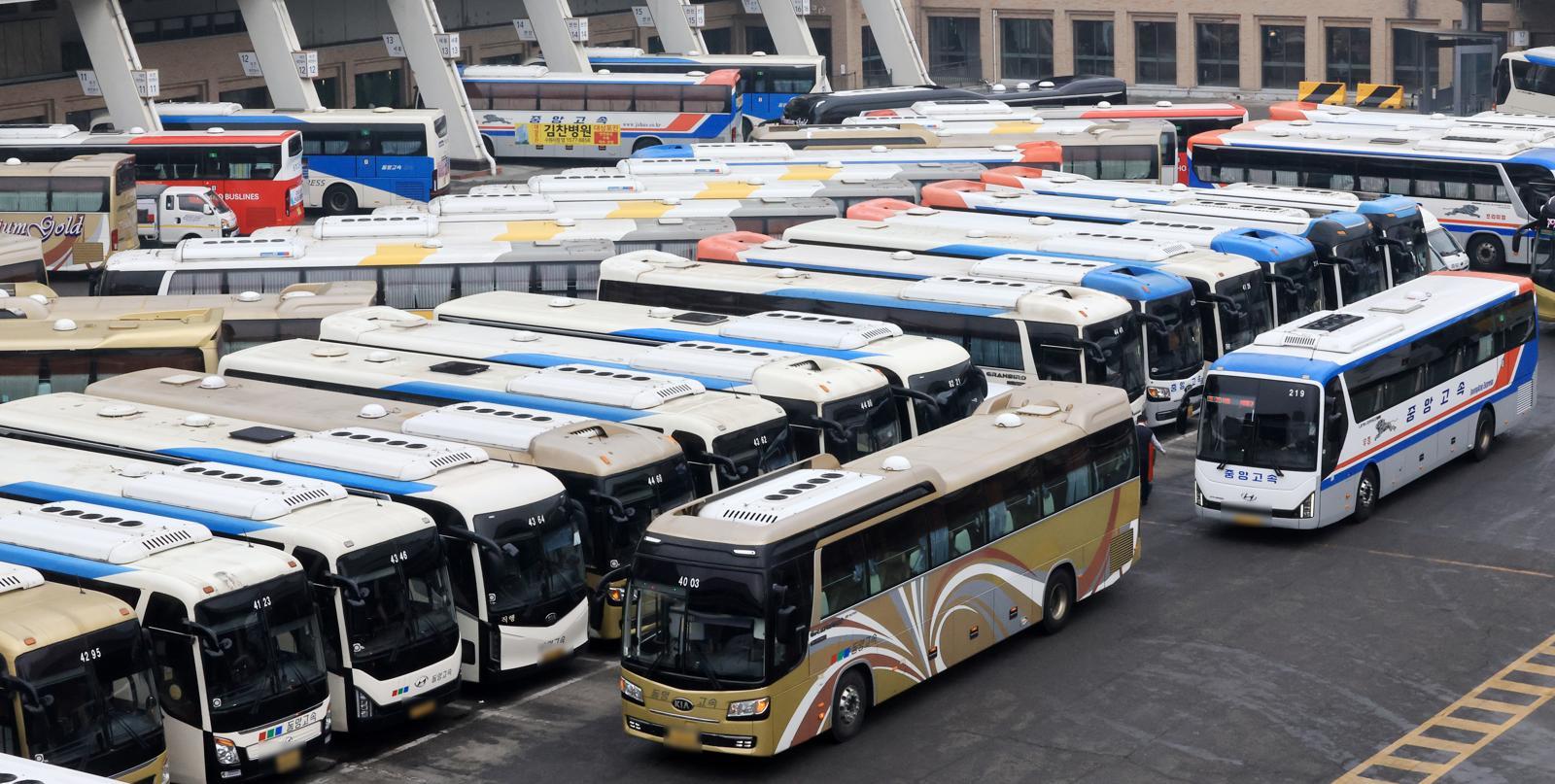 설 연휴를 하루 앞둔 13일 오후 서울 서초구 고속버스터미널에서 귀성버스들이 출발시간을 기다리고 있다. 2026.2.13/뉴스1