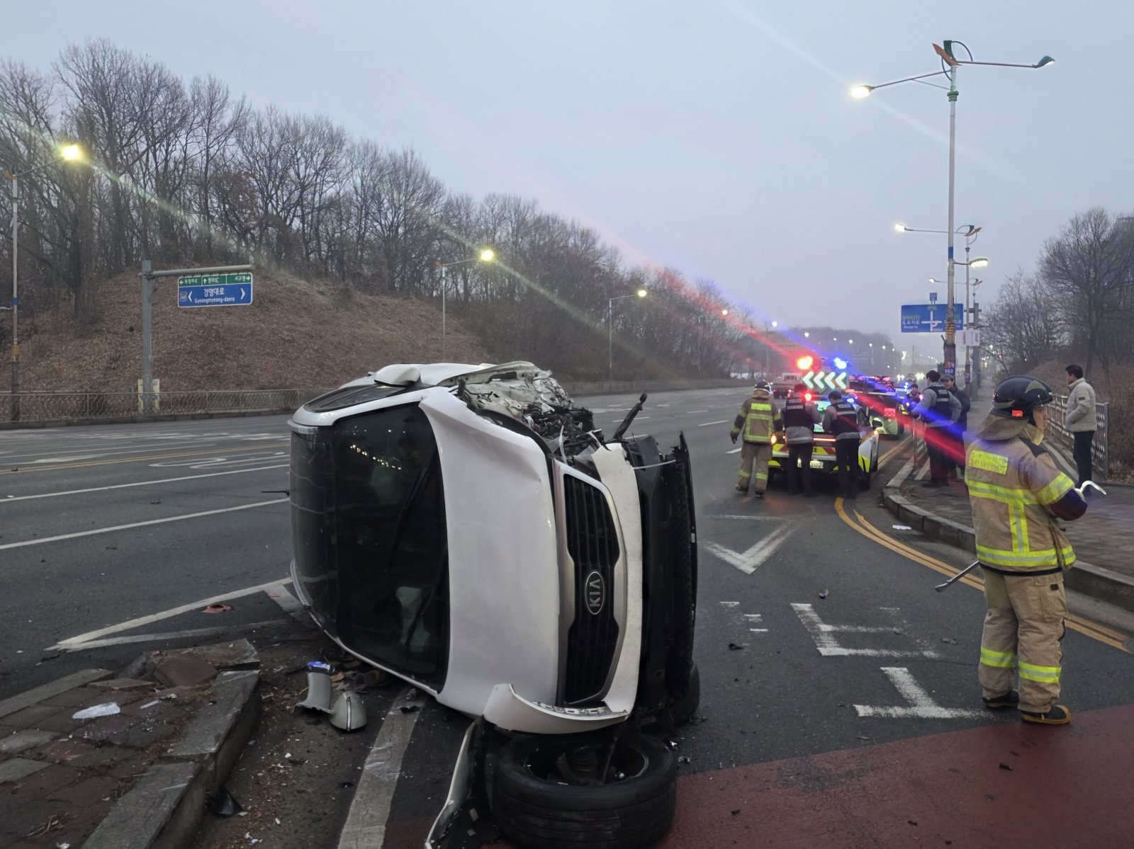 이후 사고 충격으로 A씨의 차가 전도됐으나, A씨는 크게 다치지 않은 것으로 파악됐다. 동승자는 없었다.