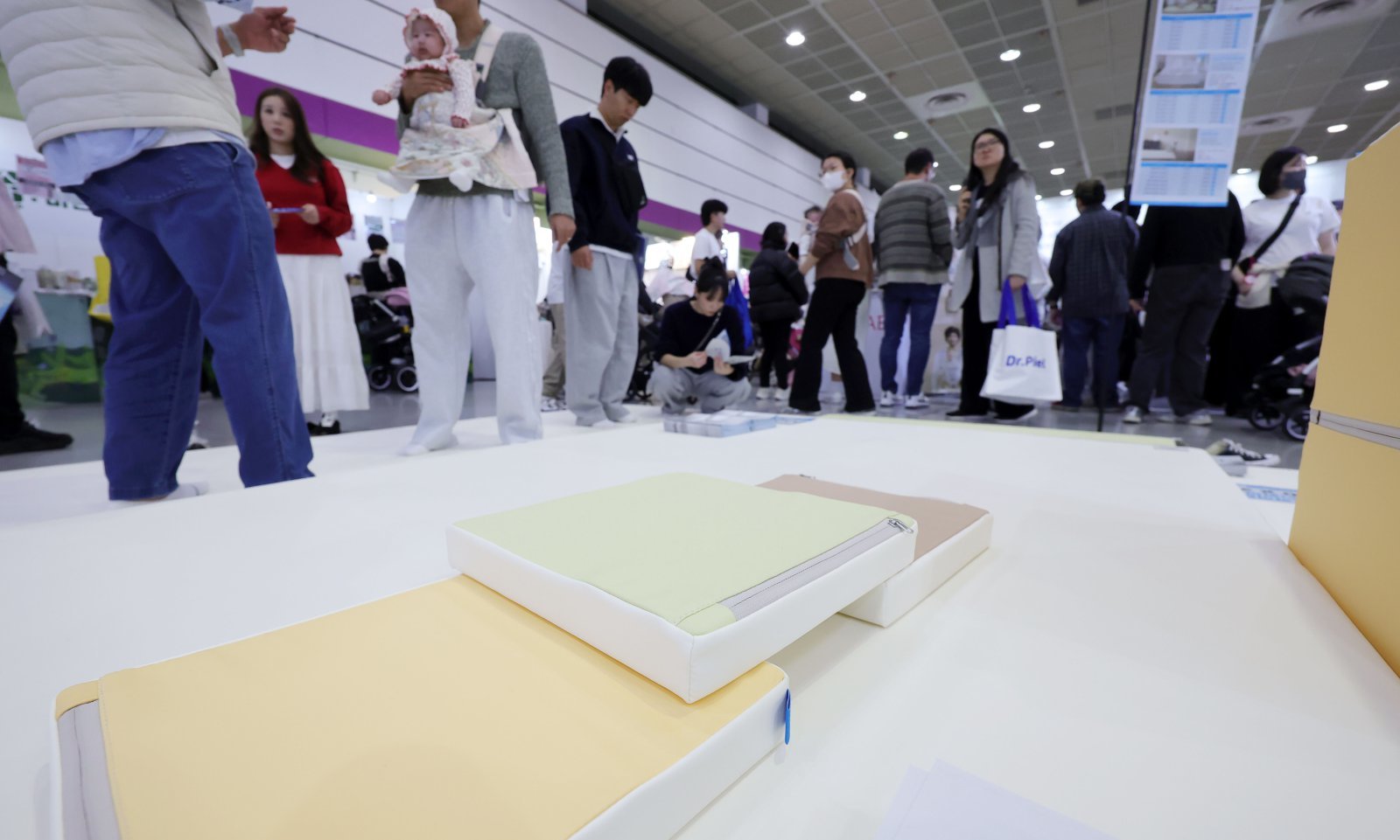6일 서울 강남구 코엑스에서 열린 코베 베이비페어를 찾은 관람객들이 유아 매트를 살펴보고 있다. 2025.11.06. 서율=뉴시스