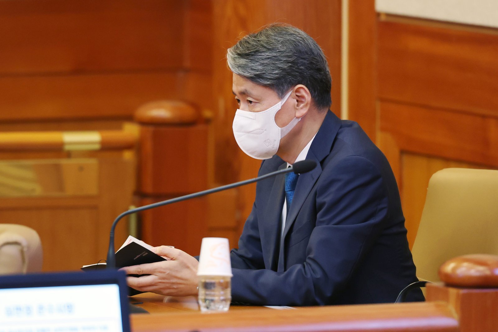 조지호 경찰청장이 30일 오후 서울 종로구 헌법재판소 대심판정에서 열린 탄핵심판 사건 2차 변론기일에 출석해 자리하고 있다. 2025.09.30 뉴시스