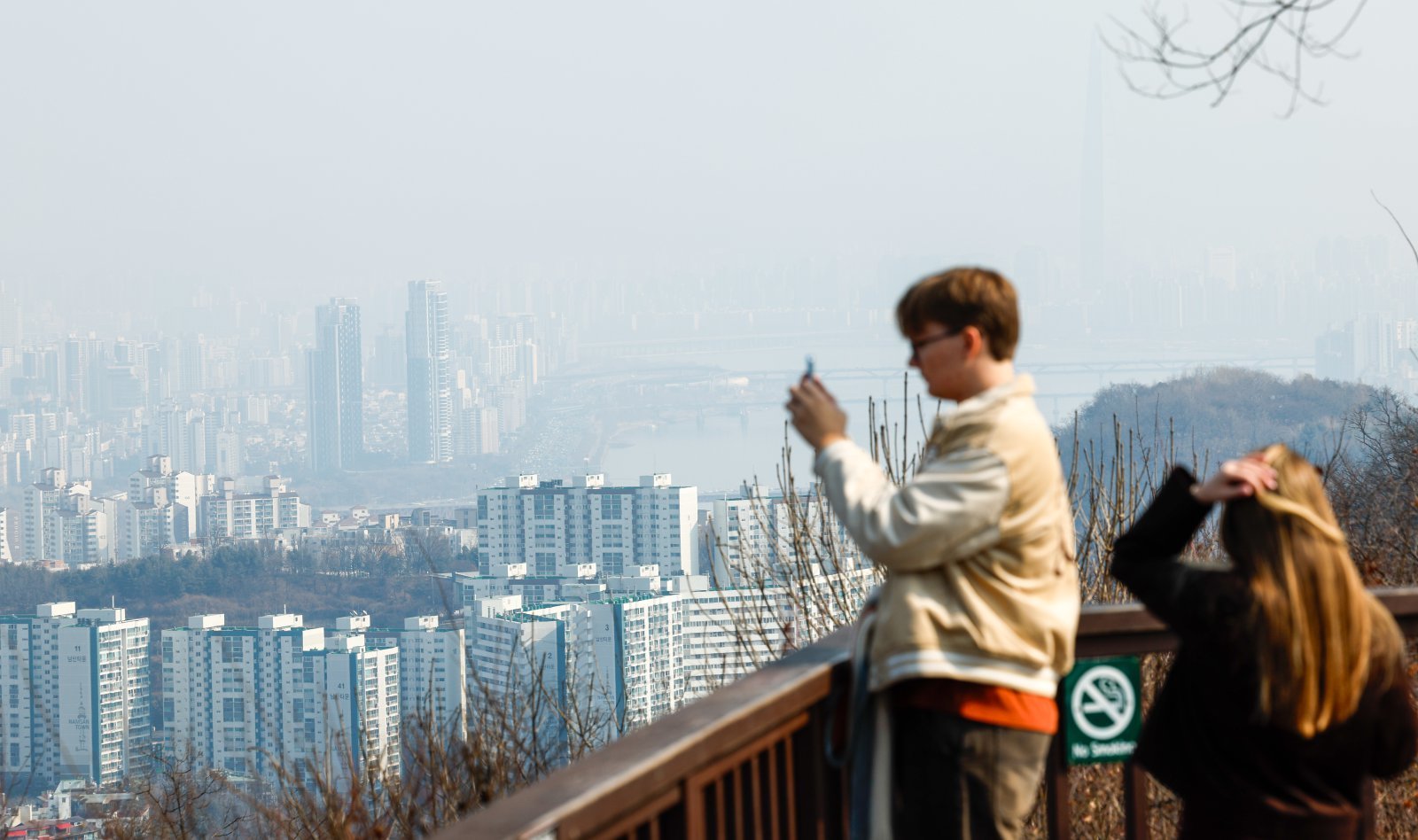 날이 포근해지자 초미세먼지가 ‘나쁨’ 수준을 보인 가운데 서울 남산에서 관광객들이 사진을 찍고 있다. 2026.2.20 ⓒ 뉴스1