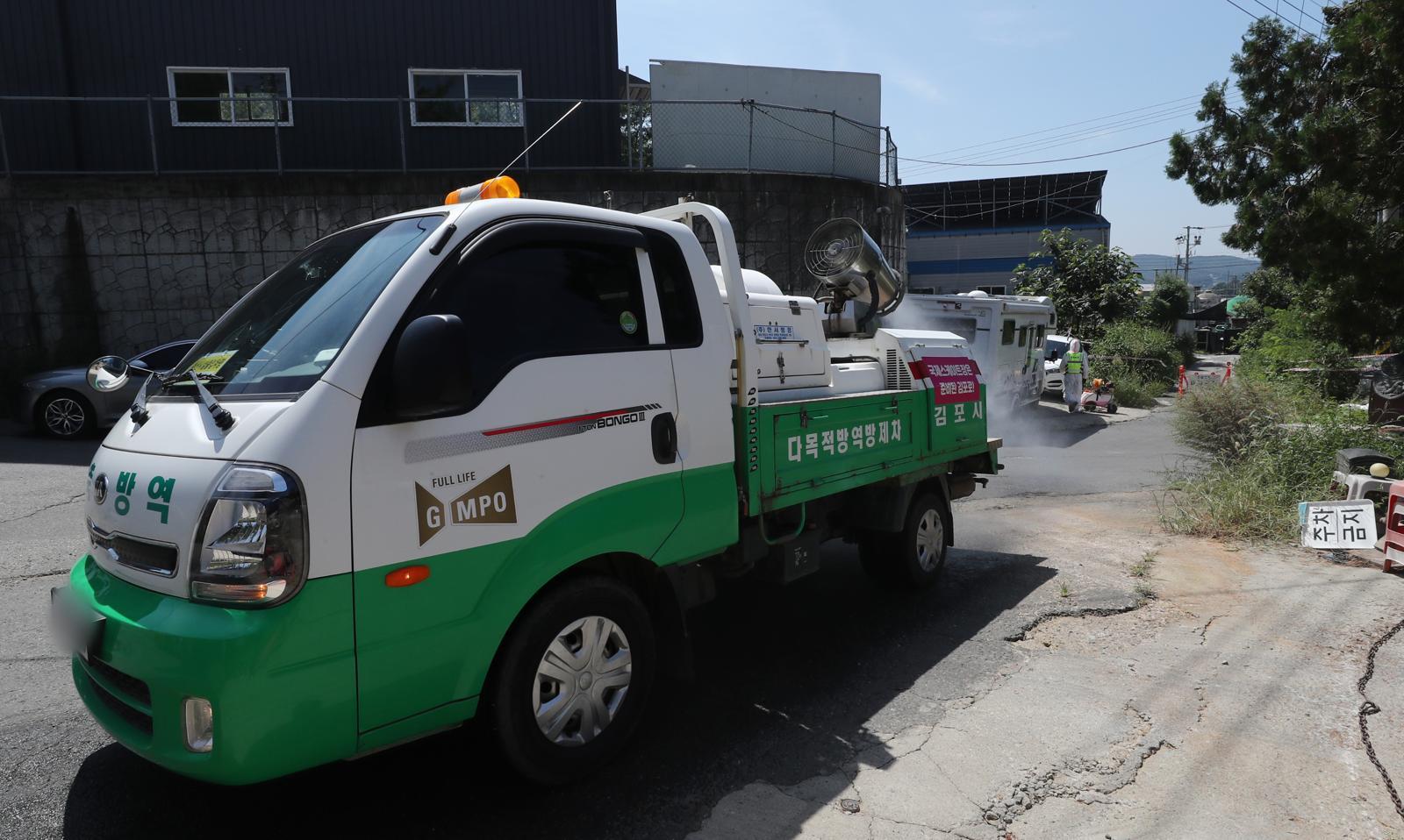 31일 경기도 김포시 한 양돈농가에 아프리카돼지열병(ASF)이 발병해 방역차량이 방역작업을 하고 있다. 2024.8.31 ⓒ 뉴스1