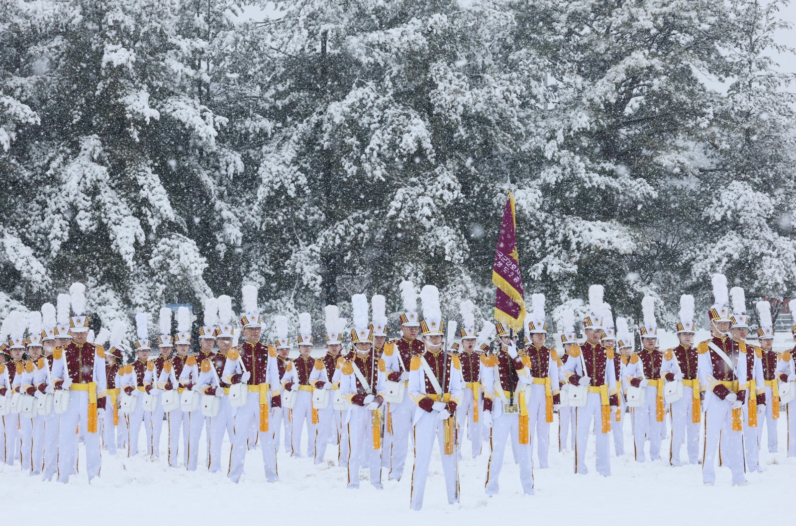 눈이 내린 지난 24일 대전 유성구 국군간호사관학교에서 열린 제70기 입학식에서 생도들이 도열해 있다. 2026.2.24 ⓒ 뉴스1