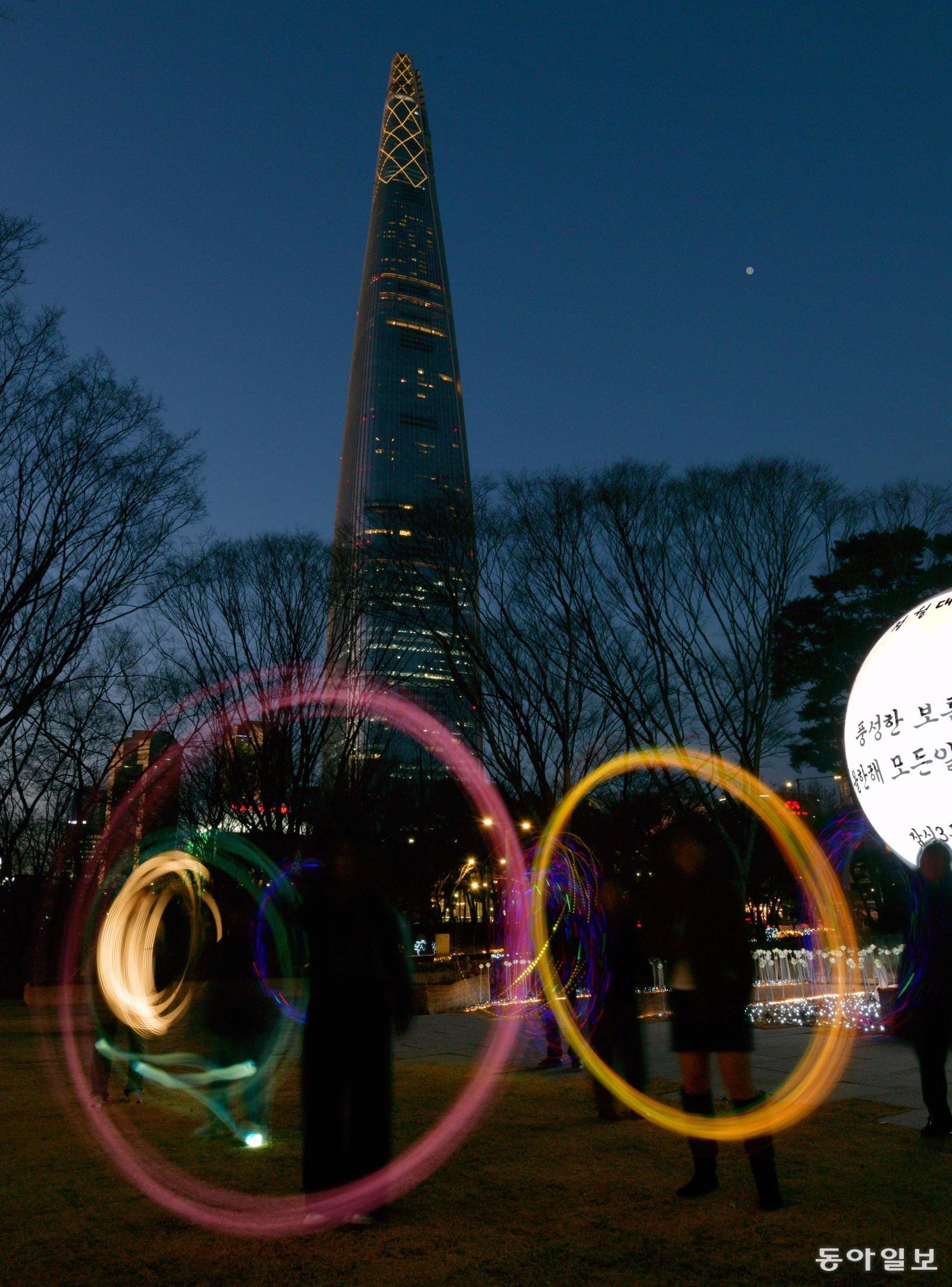 정월대보름을 일주일가량 앞둔 25일 오후 서울 송파구 석촌호수 ‘더스피어’에서 열린 발광다이오드(LED) 쥐불놀이 행사에서 시민들이 LED 쥐불놀이 체험을 하고 있다.
