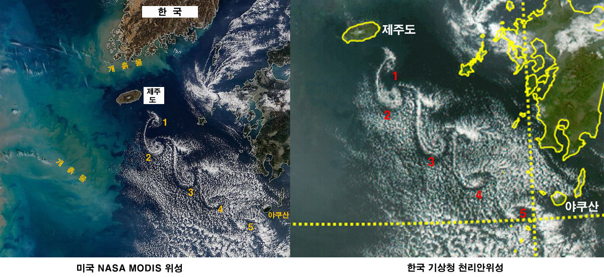 한라산이 만들어낸 신비…달팽이구름 위성이 관측