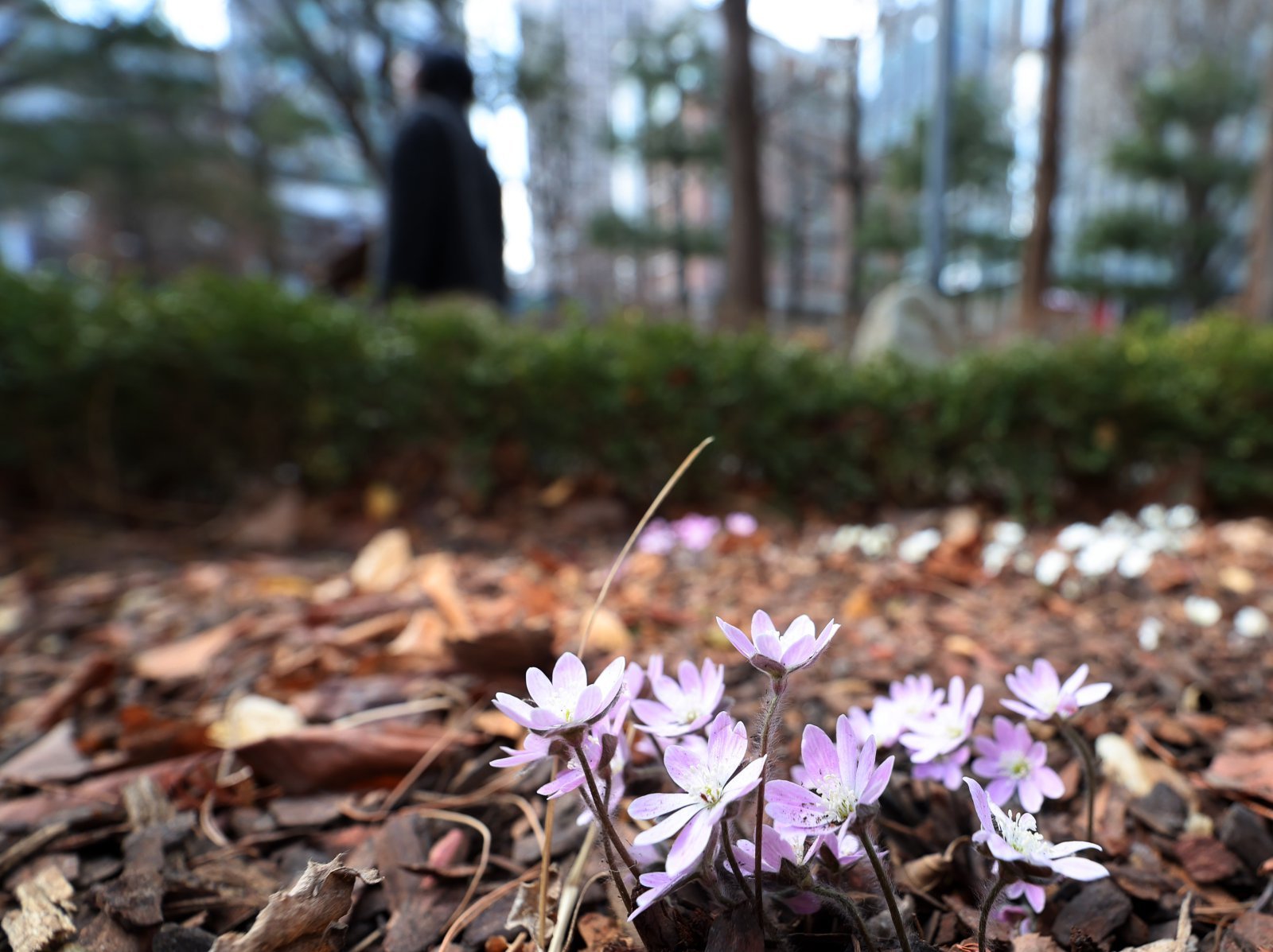 서울 낮 최고기온 15도 등 전국이 10도 이상의 따뜻한 날씨를 보인 27일 오후 종로구 세종문화회관 인근 화단에 봄꽃이 꽃망울을 터뜨리며 봄을 재촉하고 있다. 2026.02.27. [서울=뉴시스]