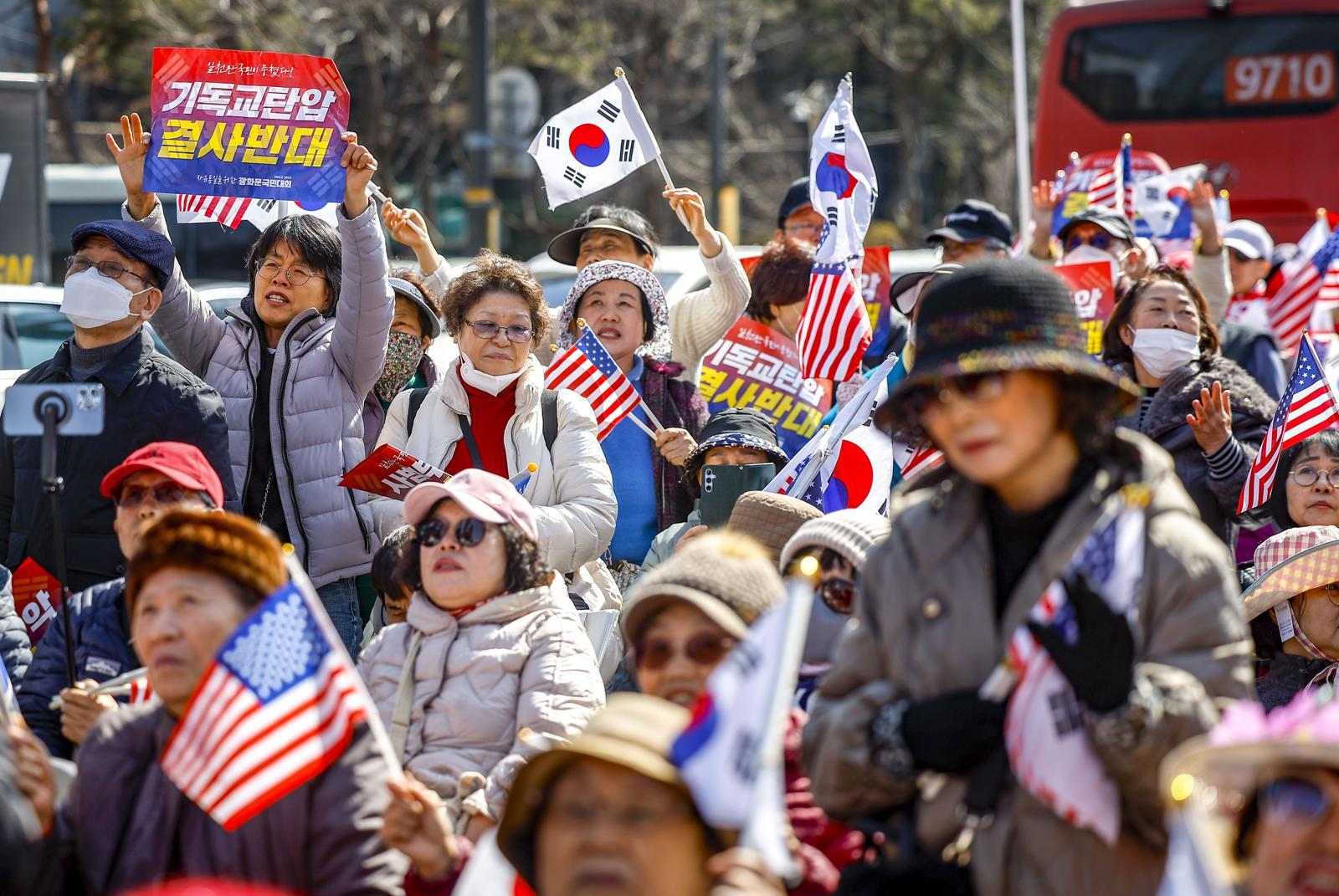 3·1절을 하루 앞둔 지난달 28일에도 대규모 집회가 열렸다. 전광훈 사랑제일교회 목사가 이끄는 대한민국바로세우기국민운동본부는 오전 11시 반경 종로구 동화면세점 앞에서 집회를 열고 윤석열 전 대통령과 전 목사의 석방을 요구했다. 참가자 1만여 명(경찰 비공식 추산)은 성조기와 태극기를 든 채 “전광훈” “윤석열” 등 이름을 연호했다.