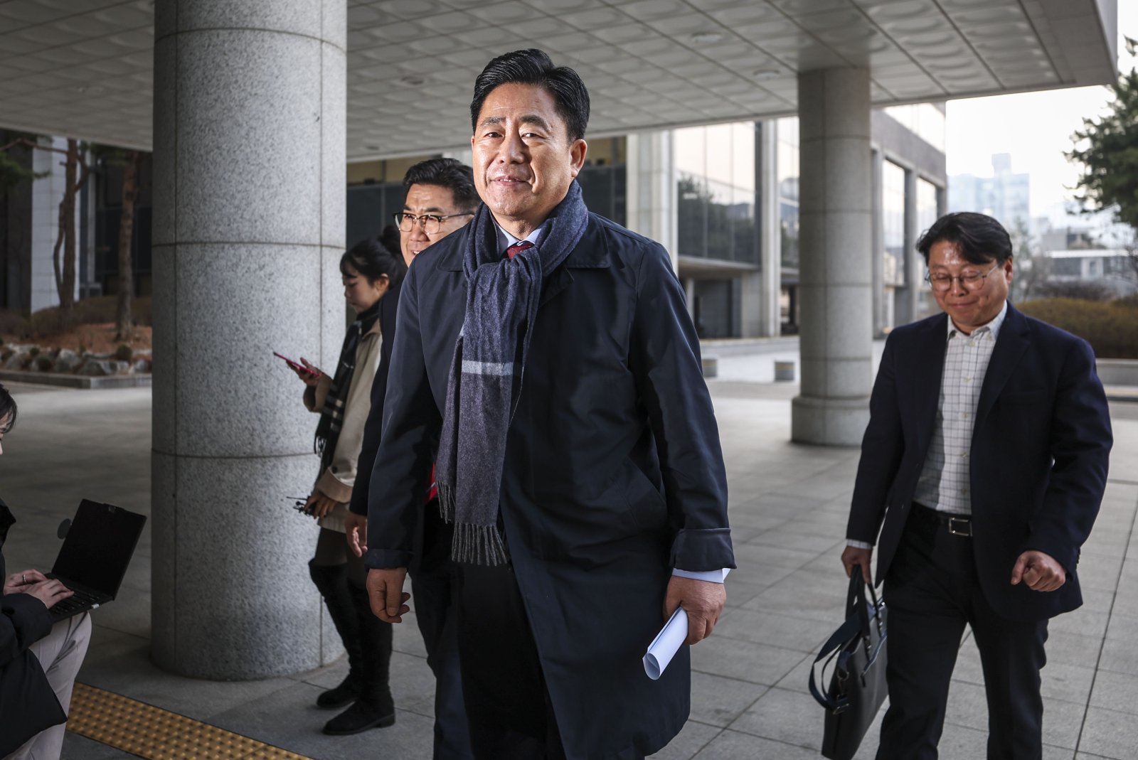 통일교 금품 수수 의혹을 받는 김규환 전 미래통합당 의원이 25일 오전 서울 서초구 서울고등검찰청에 마련된 정교유착 비리 의혹을 수사하는 검경 합동수사본부에 조사를 받기 위해 출석하고 있다. 2026.03.05 서울=뉴시스