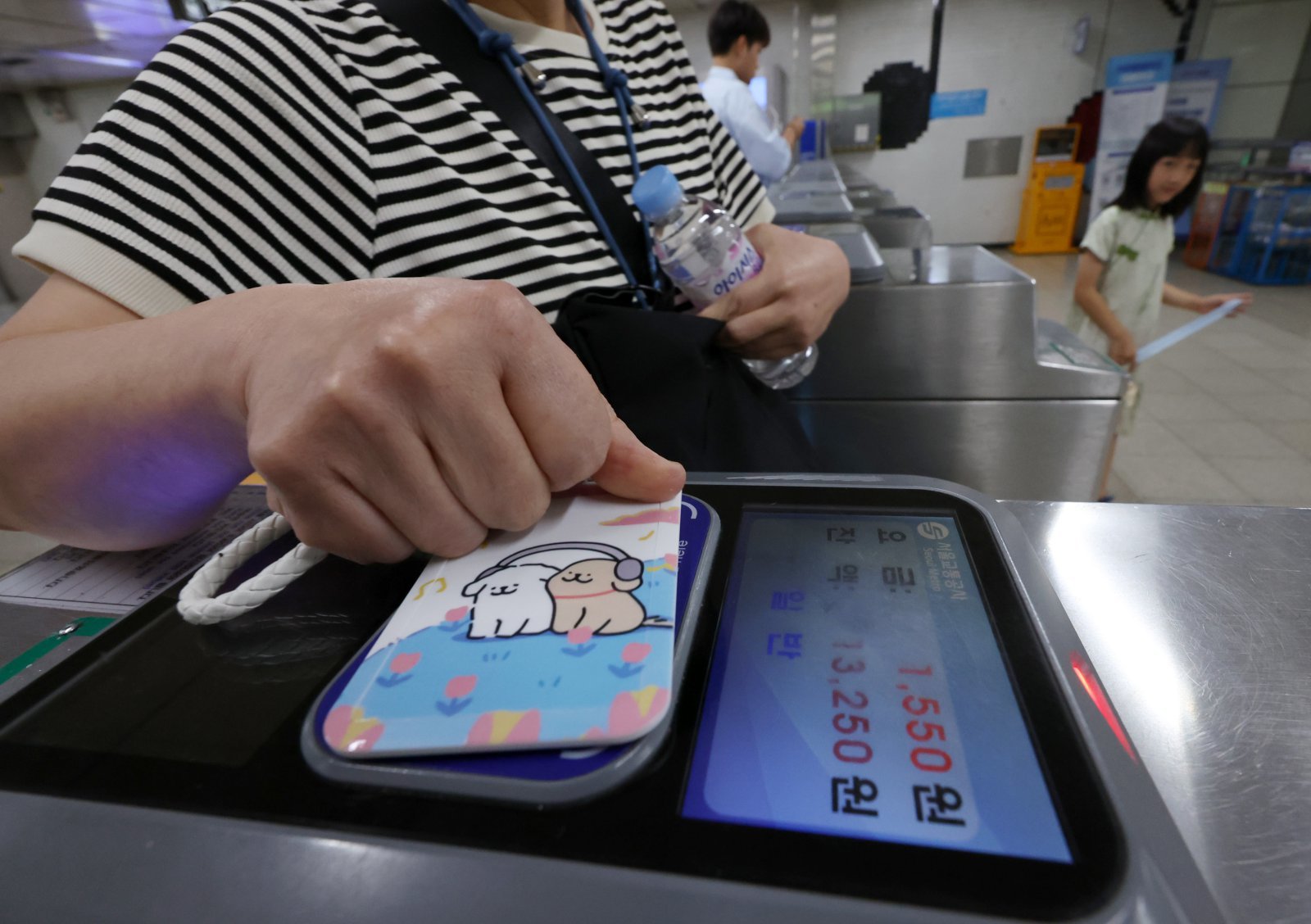 한 시민이 29일 서울 시내의 한 지하철역 개찰구에서 교통카드를 태그하고 있다. 지난 28일부터 서울·인천·경기 지하철을 탈 때 교통카드 기본요금이 기존 1400원에서 1550원으로 150원 인상됐다. 2025.06.29.[서울=뉴시스]