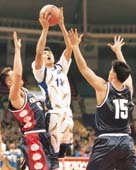대우의 최종규감독은 첫 작전타임을 불러 수비를 지역방어로 전환했지만 강양택과 정성조 김희선의 3점포를 제대로 막지 못한데다 우지원의 슛이 불발, 전반을 36대44 8점차로 뒤졌다.