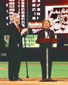 「재키 로빈슨데이」50주년 기념식에서 재키 로빈슨의 미방인 레이첼