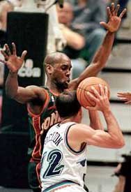유타 재즈가 안방 델타 센터에서 시애틀 수퍼 소닉스를 96대93으로 물리치고 플레이오프 2라운드에 진출했다. 서부컨퍼런스 플레이오프 1라운드에서 맞선 양팀의 대결은 홈 어드벤티지의 중요성을 새삼 일깨워준 경기였다. 유타는 홈에서 열린 1,2차전과 최종 5차전을 승리, 시애틀 원정 2연패의 충격을 극복했다.