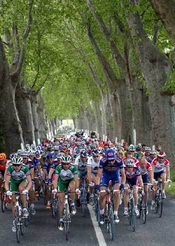 22일(현지시각) 프랑스 그랑프리 사이클대회에서 선수들이 3번째 라인을 통과하고 있다. 「AFP」