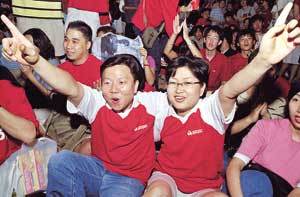 이 같은 ‘냉전’도 잠시. 전반 26분. 황선홍의 멋진 발리슛이 터지자 나씨는 붉은 악마들과 함께 펄쩍펄쩍 뛰었고 정씨도 덩달아 달아올랐다.