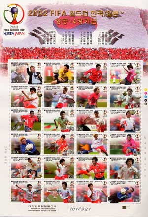 우정사업본부가 2002한일월드컵대회를 성공적으로 치르고 한국 대표팀이 4강에 오른 것을 기념하기 위해 발행한 이 우표세트는 상단에 '붉은 악마'의 대형 태극기 응원모습을 배경으로 대표팀 선수 24명이 다양한 모습으로 표현돼 있다.
