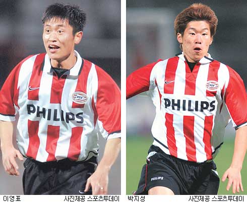 이영표와 함께 아인트호벤 유니폼을 입은 박지성은 하프타임 때 케즈만을 대신해 교체 투입됐다.
